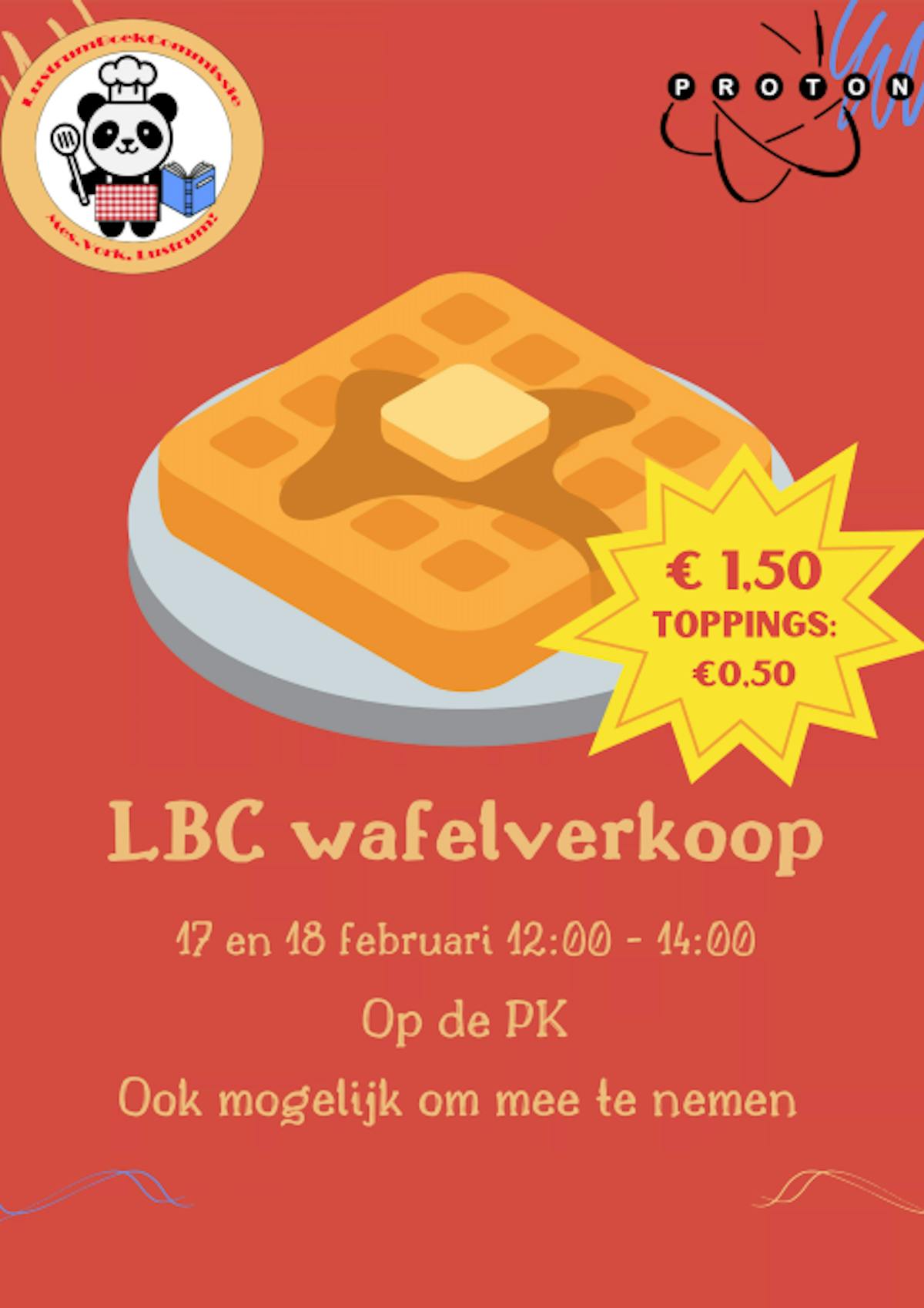Ben jij helemaal kapot van lab en heb je een oppeppertje nodig? Heb jij behoefte aan iets zoets na je college? Heb jij ontzettende honger omdat je ZO HARD geleerd hebt voor je tentamen? Kom dan woensdag 17 en donderdag 18 februari tussen 12:00 en 14:00 naar de Protonkamer voor een plakje geijzerd genot (ook wel een wafel)! En dat voor maar één euro vijftig!! (toppings zijn €0,50)